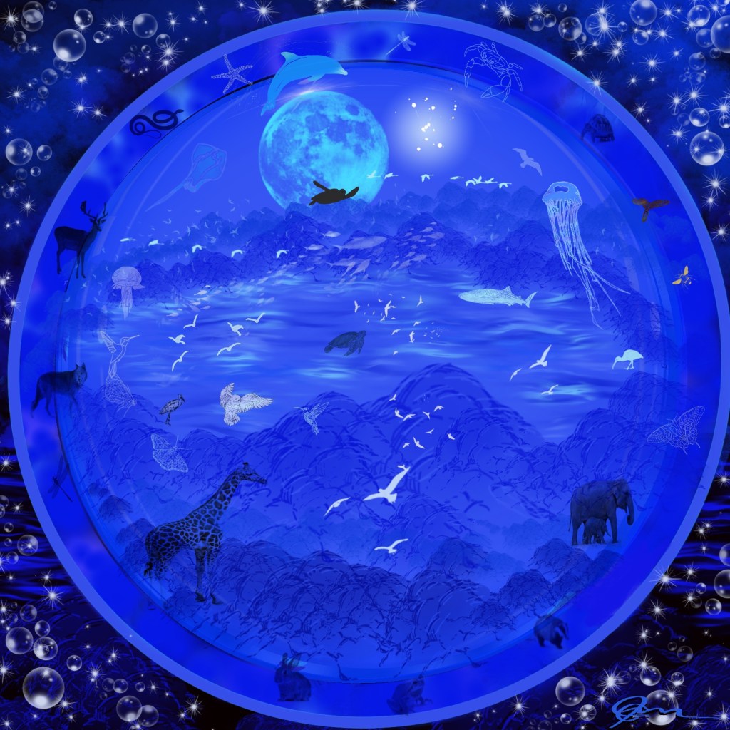 over oceans of water and grass
