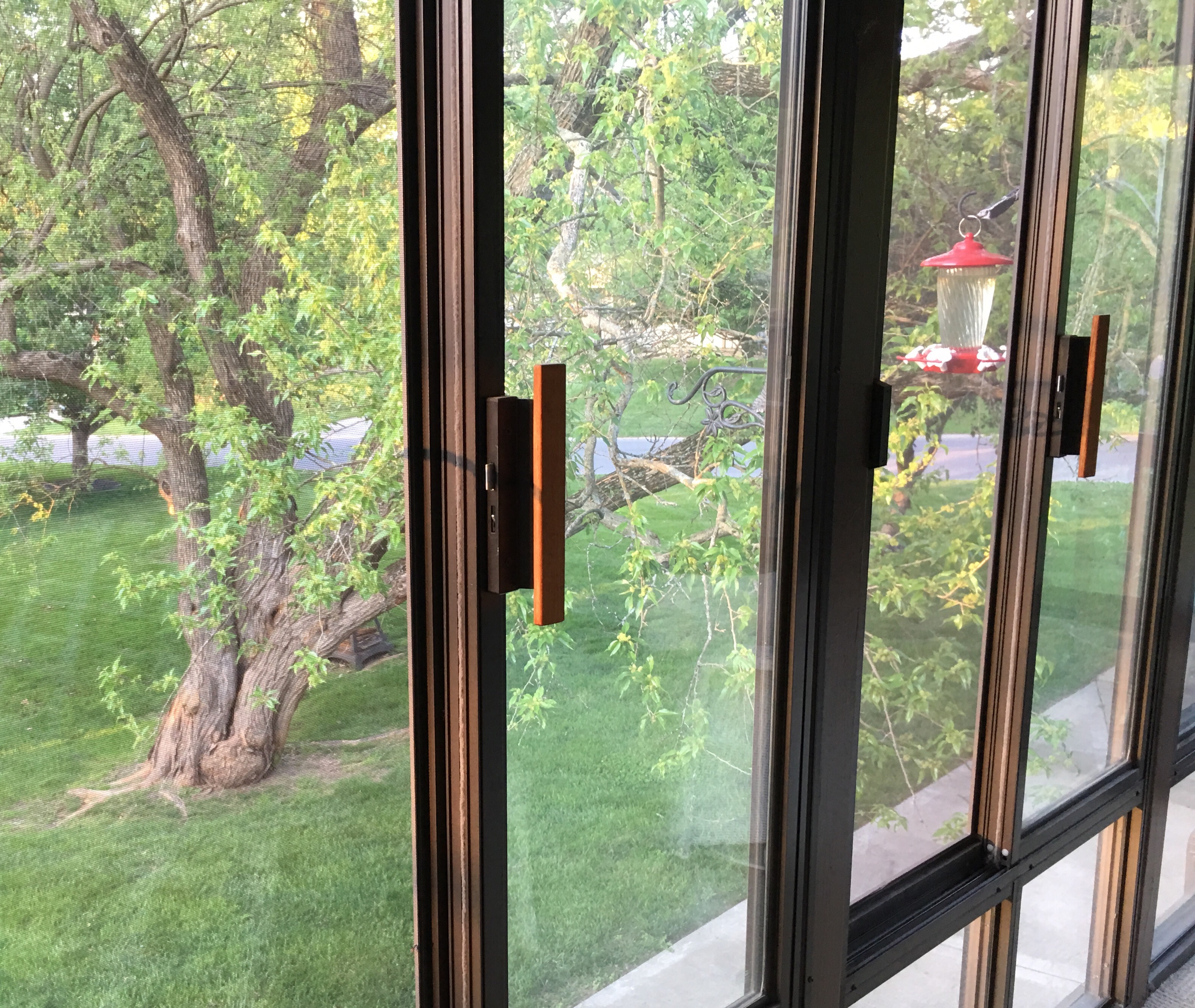 just outside this windowed nest lawnmowers are droning